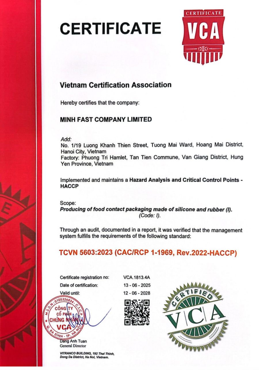 All production processes at Minh Fast comply with international quality standards. Our silicone products are manufactured using FDA-compliant, non-toxic, and BPA-free materials, ensuring suitability for the USA market across food, pet, kitchenware, and industrial applications.