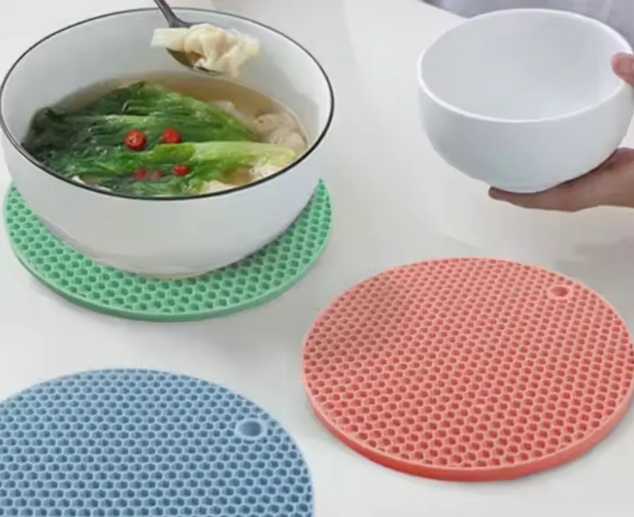 Silicone pot mats are an essential kitchen accessory, effectively protecting surfaces from high temperatures. Made from high-quality, food-safe silicone, these mats can withstand heat up to 440°F (226°C), making them ideal for placing hot pots, pans, and dishes.