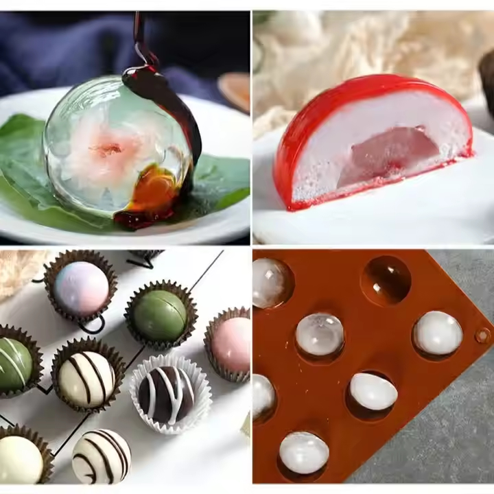 Round silicone molds help you easily create attractive vegetable jelly, pudding or round marshmallows. After pouring the liquid ingredients into the mold and freezing, you will get even round, shiny and transparent jelly balls. The flexible texture of silicone allows you to easily break the mold to take the product out without cracking.
