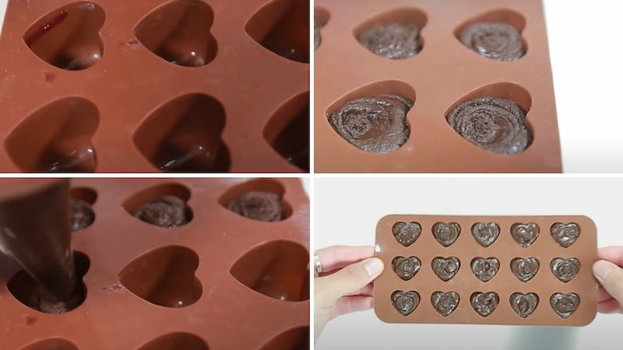 Place the mold in the refrigerator for 15–30 minutes until the chocolate hardens completely.